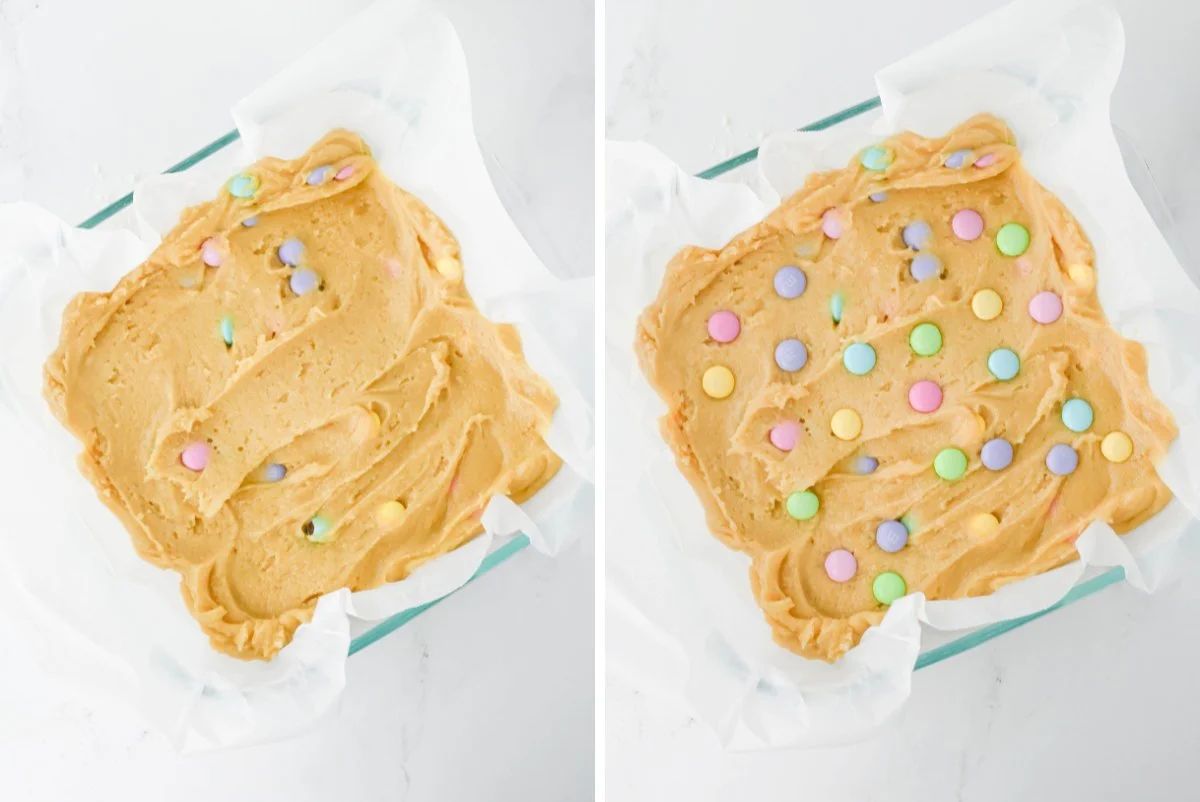 If you don’t have pastel M&Ms on hand or just want to mix things up you can easily swap them for Cadbury Mini Eggs or white chocolate chips, or even a mix of both for extra richness.