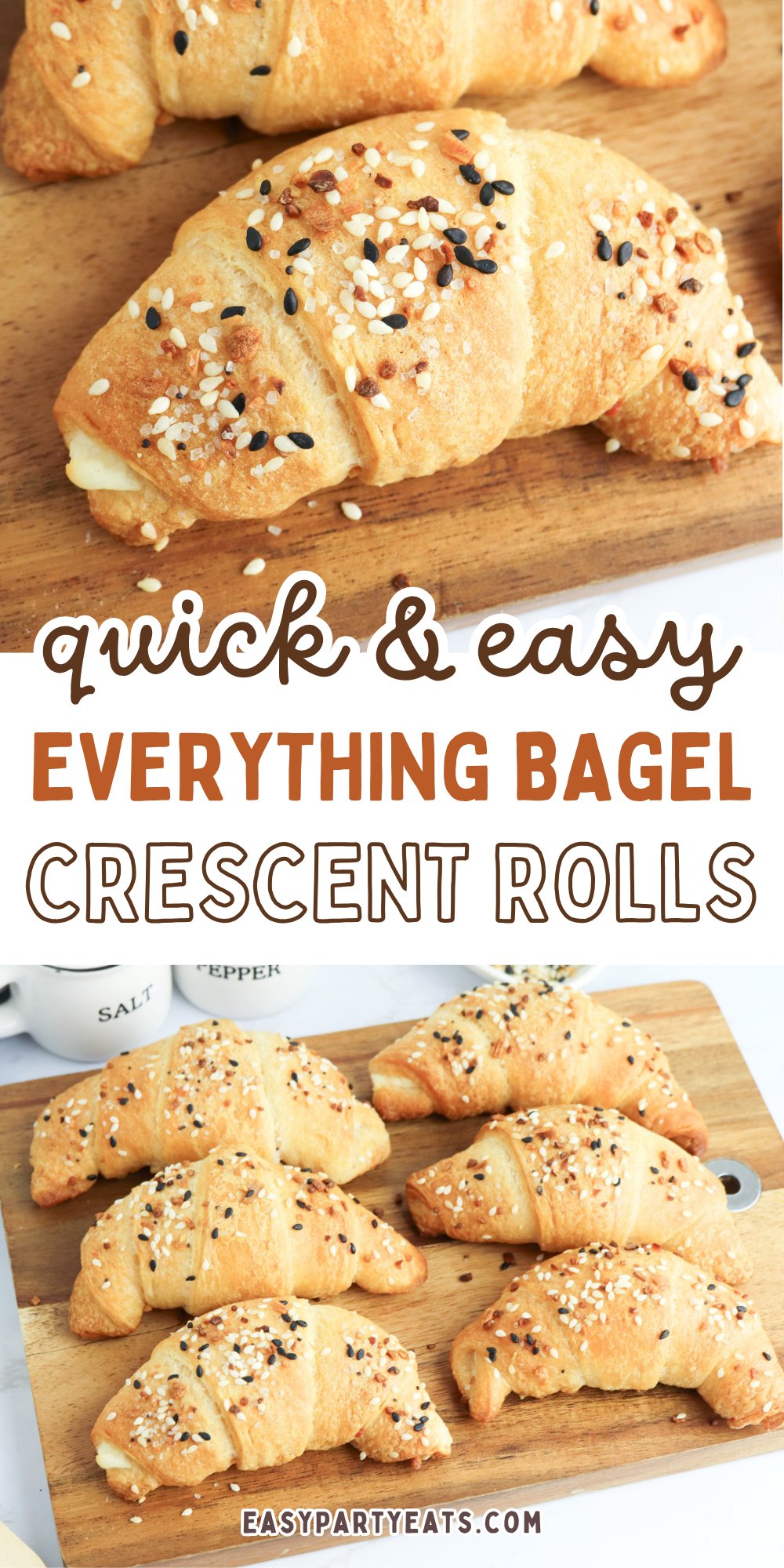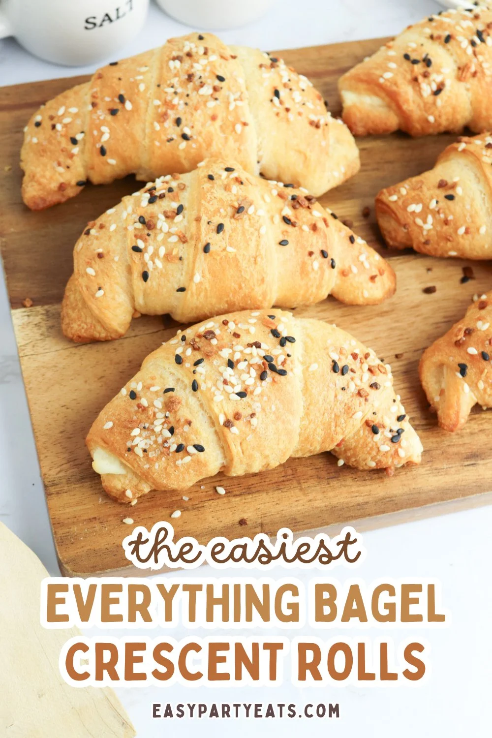 Everything Bagel Crescent Rolls are the ultimate easy appetizer made with just 4 ingredients! Flaky crescent roll dough filled with cream cheese, brushed with butter, and coated in everything bagel seasoning. Perfect for parties, brunches, and game day spreads.