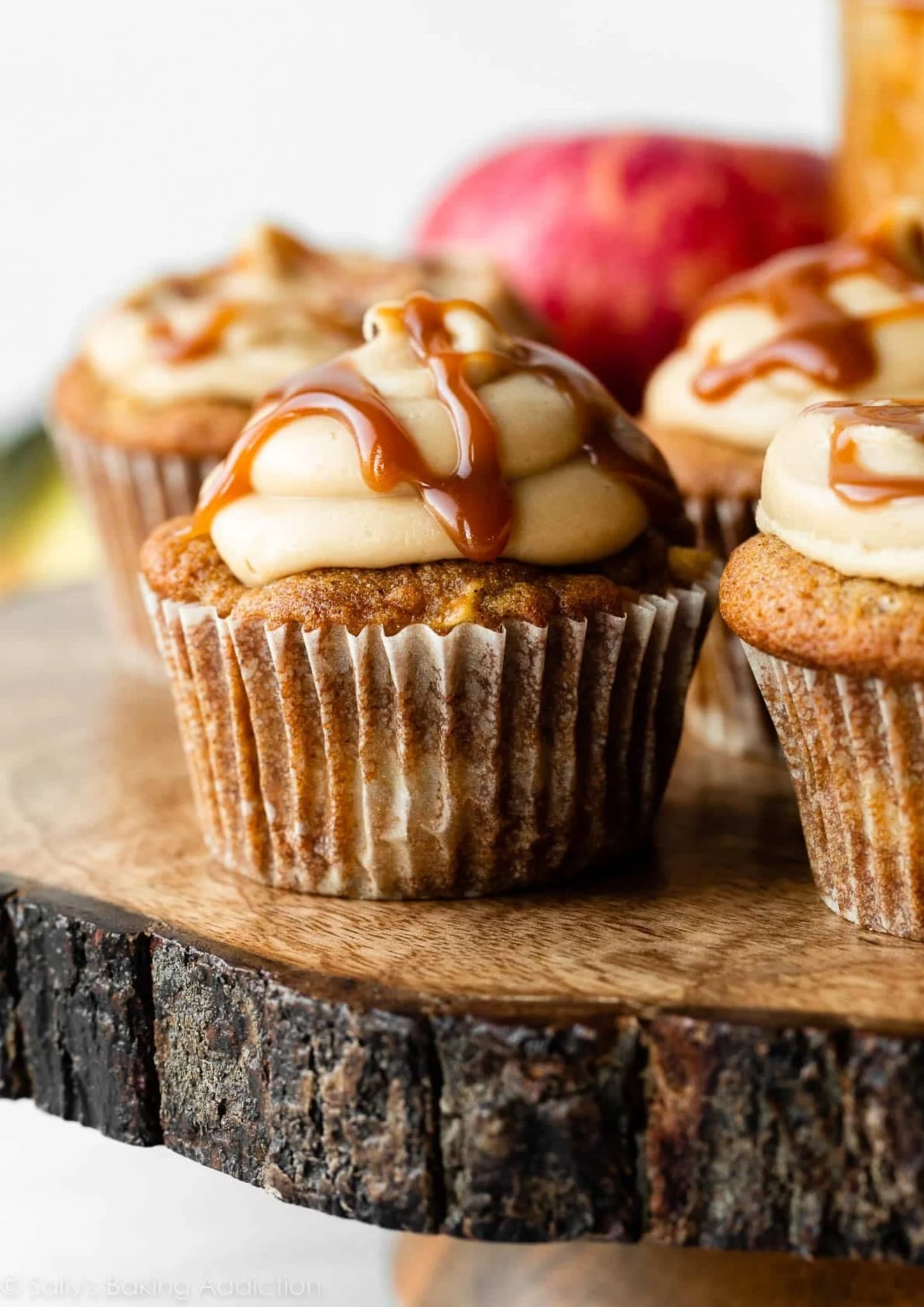 Comforting flavors like nutmeg and cinnamon dot each bite of these moist and flavorful apple cupcakes. The tiny and tender pieces of tart Granny Smith apples hiding inside melt in your mouth.
