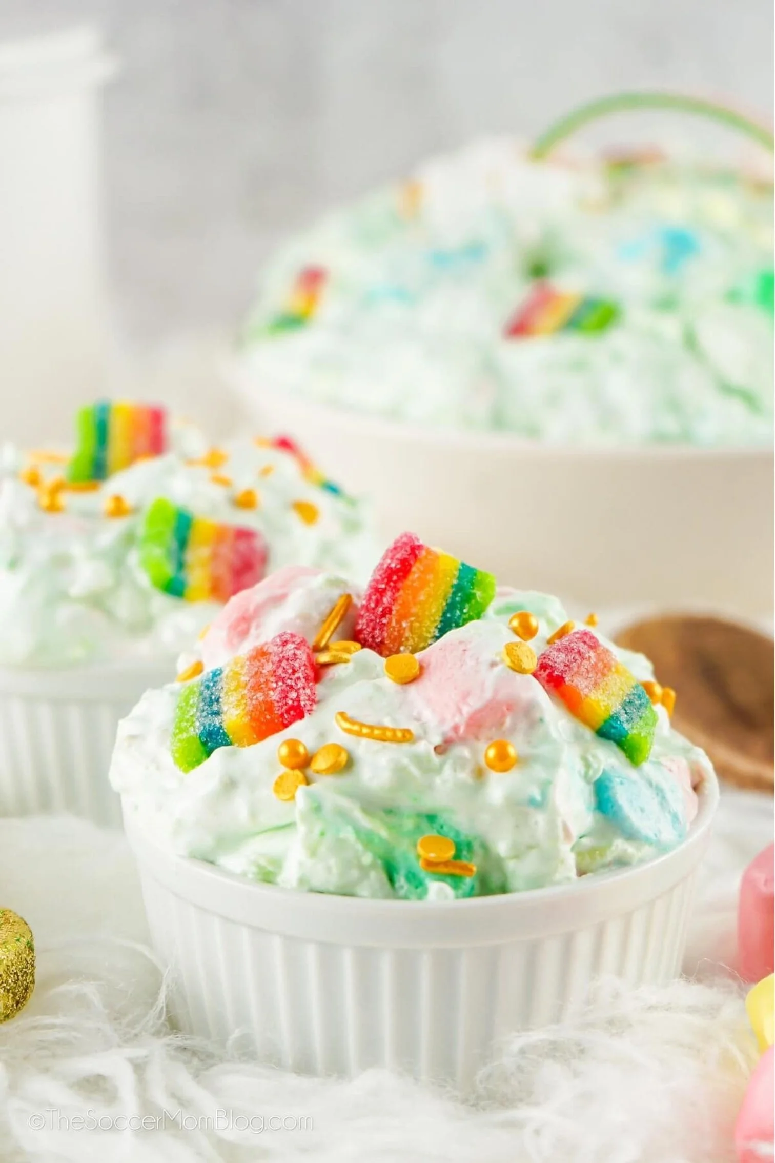 Calling all leprechauns & dessert lovers! This St. Patrick’s Day Fluff Salad is a magical mix of cool whip, pineapple, lime jello, & rainbow candy!