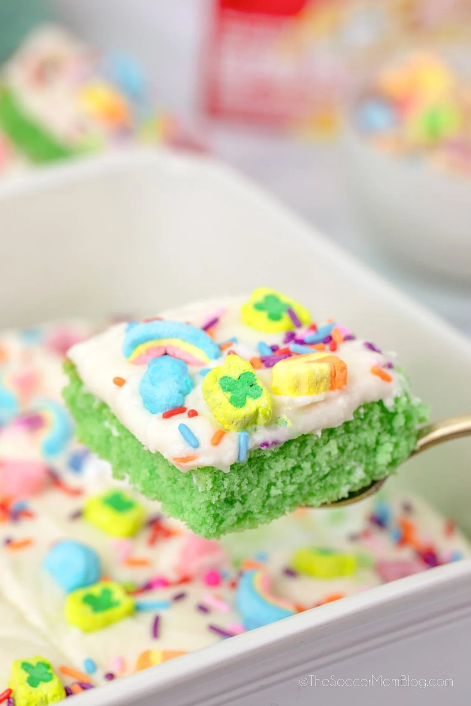 Get ready for a magically delicious treat! This Lucky Charms Cake features cereal baked into a from-scratch sheet cake and topped with those irresistible marshmallows!