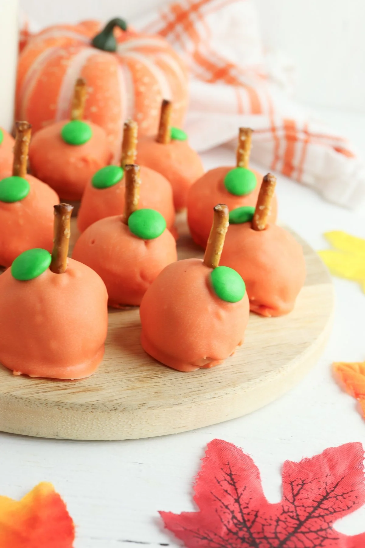 Dive into these easy no-bake Pumpkin Oreo Balls made with creamy Golden Oreos and a hint of pumpkin spice. Perfect for that autumn or Halloween-inspired treat board!