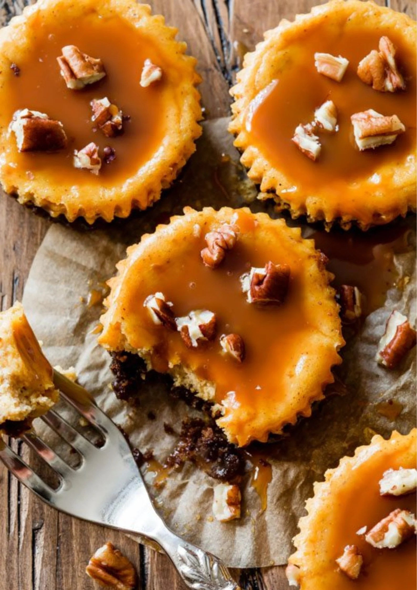 These Salted Caramel Pumpkin Cheesecakes combine a crunchy gingersnap cookie crust, a smooth and creamy pumpkin cheesecake filling, and a drizzle of homemade salted caramel.