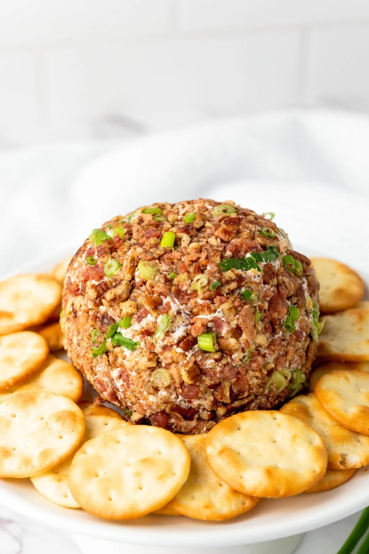 This Pecan Bacon Cheeseball is the ultimate make-ahead appetizer! Loaded with cream cheese, cheddar, crispy bacon, pecans and everything bagel seasoning.