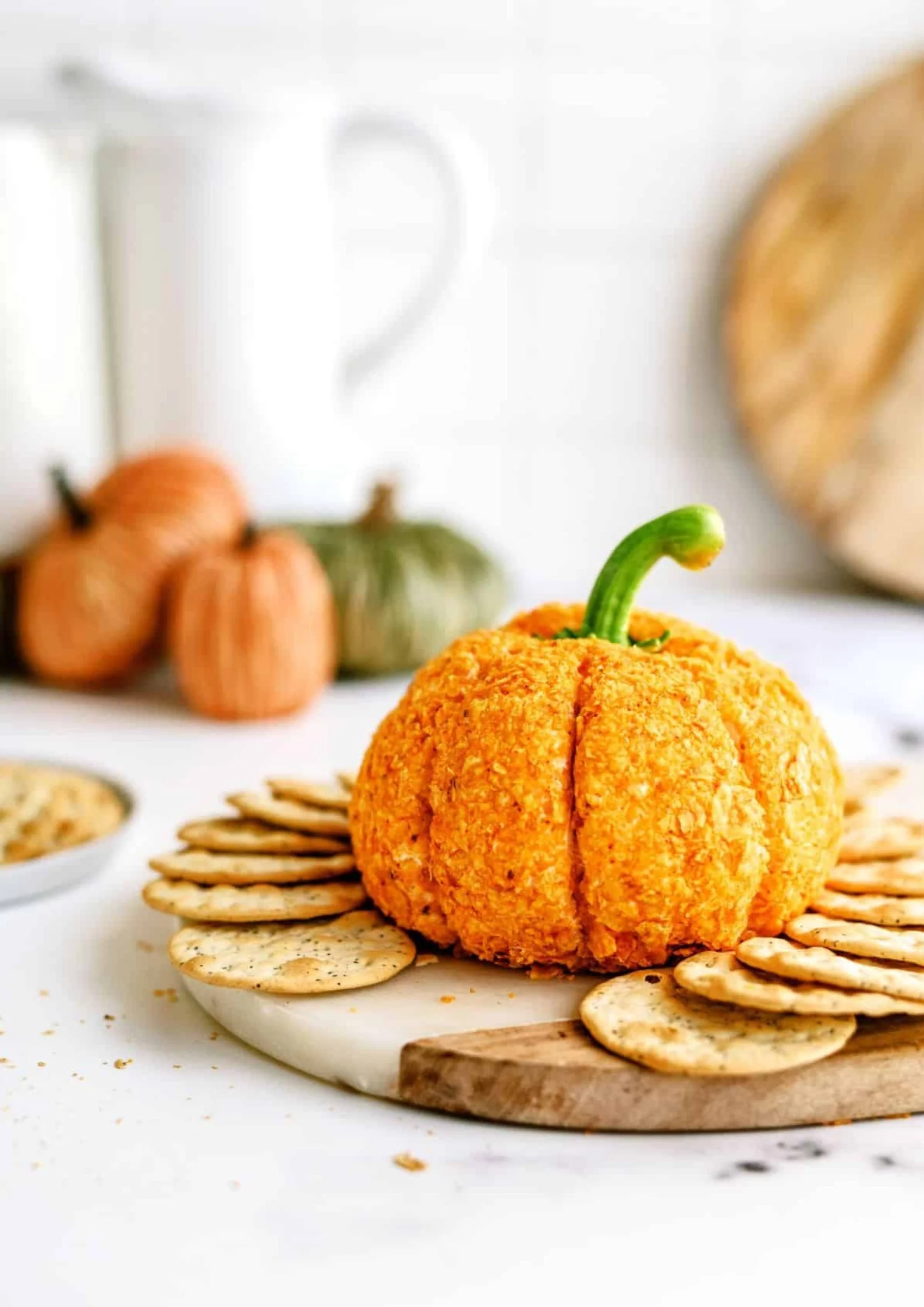 This Pumpkin-Shaped Cheeseball is made with delicious, Southwest-inspired flavors covered in cheese is an ideal Halloween appetizer.