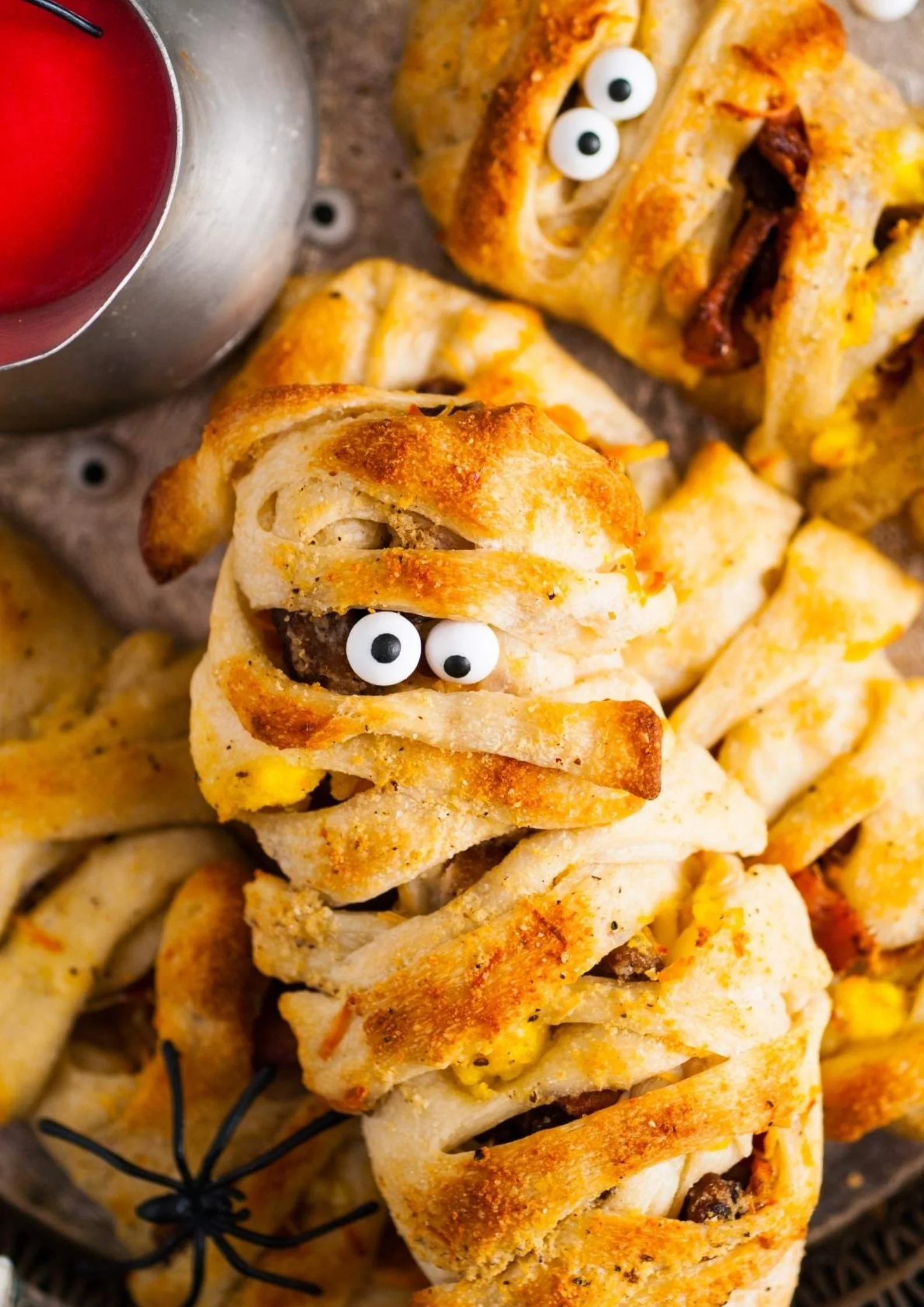 Why not start the fun with some delicious Halloween-themed foods? These Halloween Mummy Breakfast Rolls are so cute. If you are looking for creepy Halloween breakfast ideas, you have to try these.