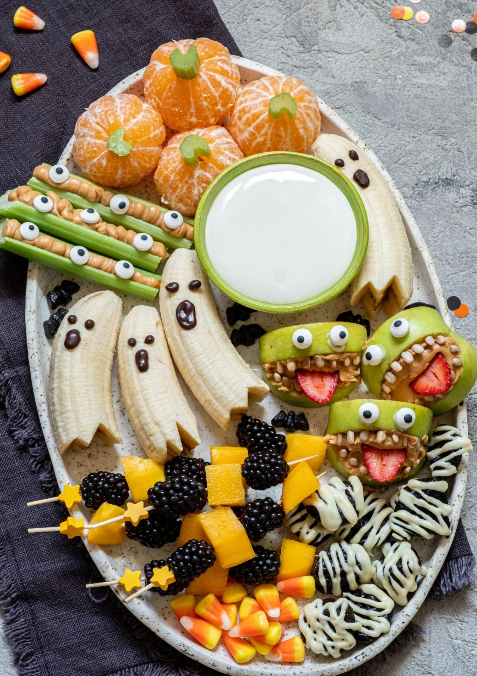 If you love to keep things on the healthier side, using clementines, celery, and apples is a great way to add some healthy choices to this Halloween Fruit Platter.