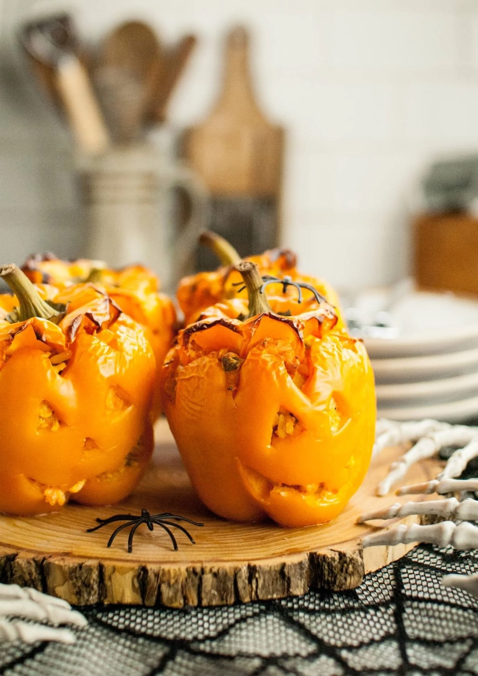 Add spooky flair to your Halloween dinner with these adorable Jack-O-Lantern Stuffed Peppers. Packed with creamy, cheesy buffalo chicken and rice, these festive peppers are carved like mini pumpkins and baked until warm and soft.