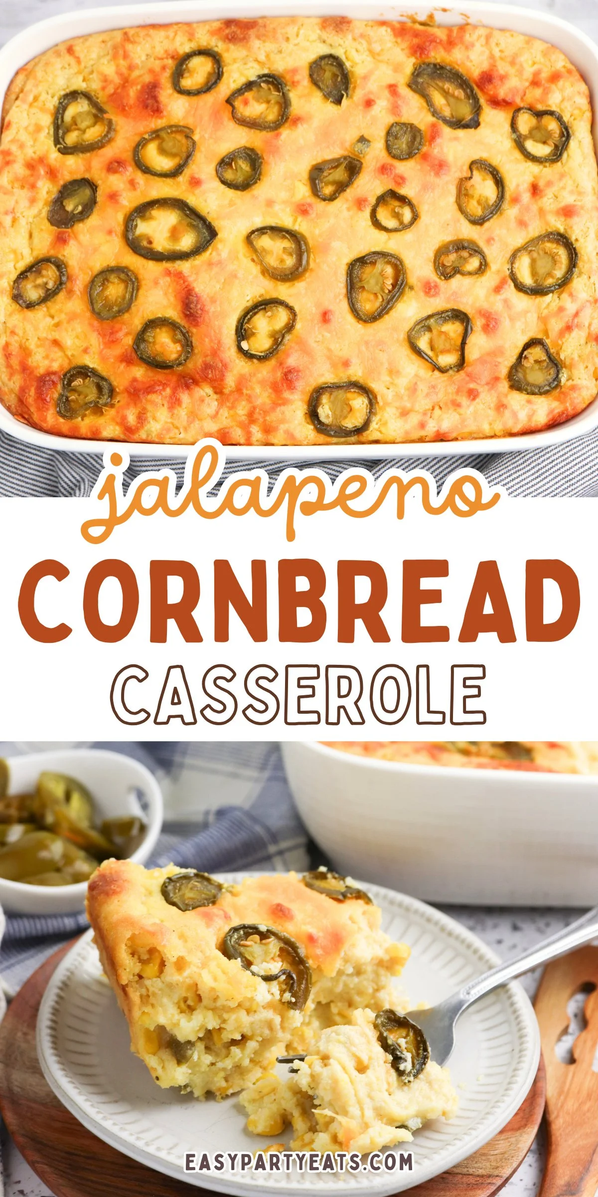 This Jalapeño Cornbread Casserole is creamy, cheesy, and packed with creamed corn and just the right amount of heat! This easy side dish is perfect for holidays, potlucks, BBQs and family dinners.