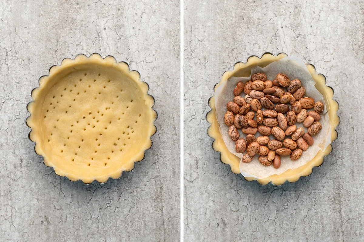 6. Place on a baking sheet and blind bake for about 30 minutes, until lightly golden.