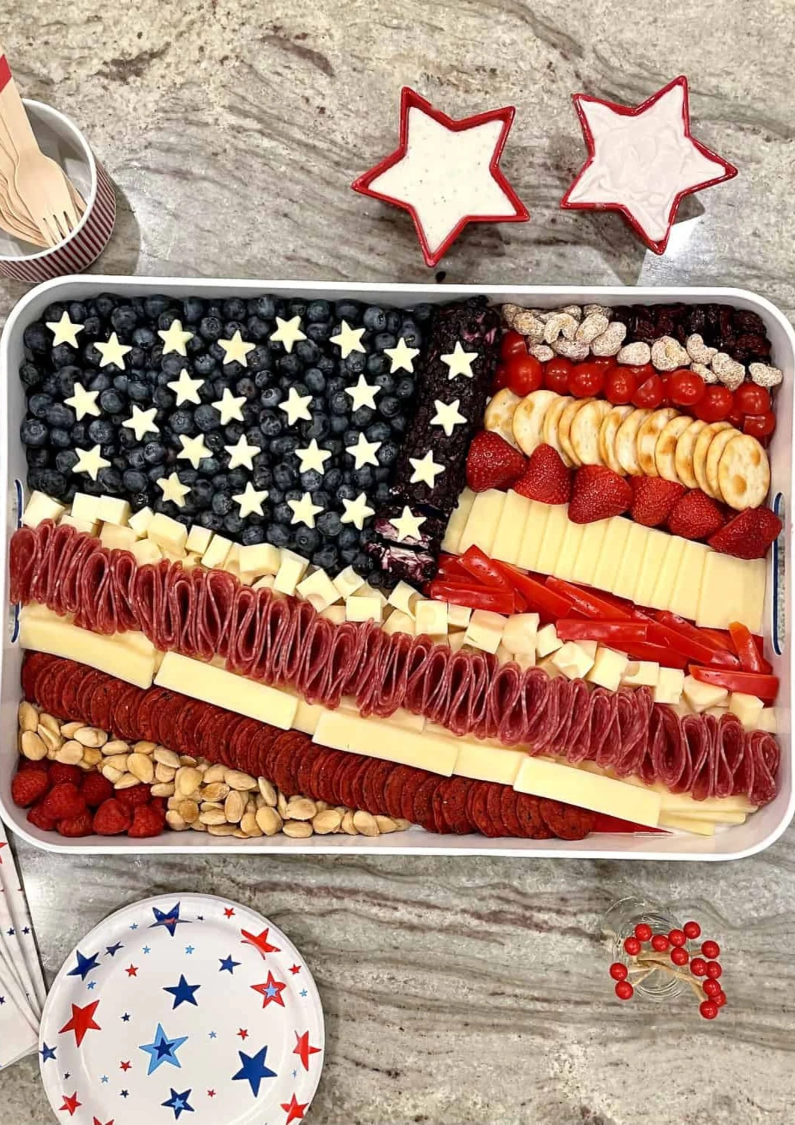 I put together this American Flag Cheese Tray as a last-minute 4th of July snack lunch and it was such a huge hit with my family! We all oohed and aahed over it as we gathered around to dig in to all the deliciousness.